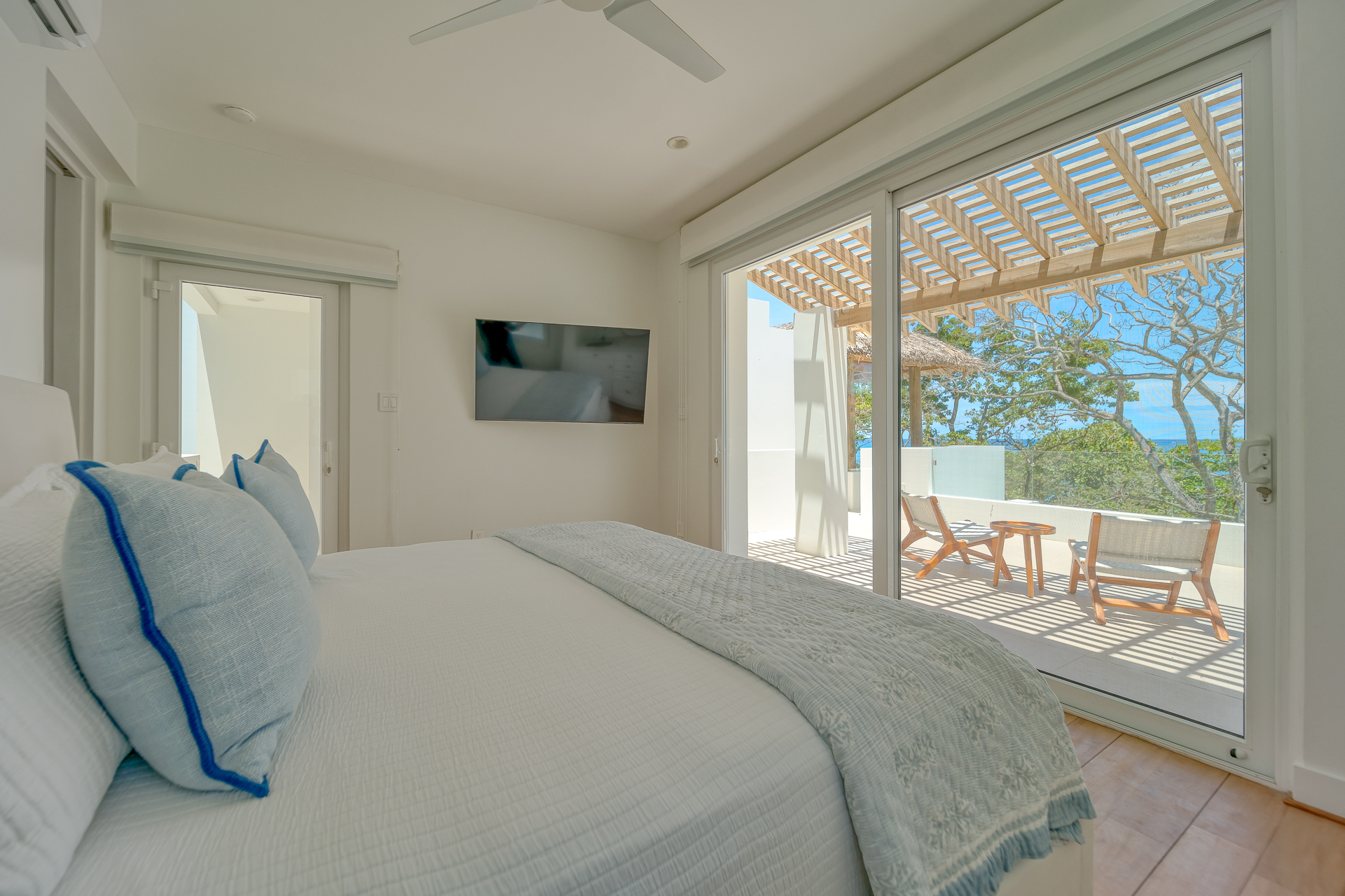 • Third Floor Detached Suite: Accessible via an exterior stairwell for added privacy, this level features a private studio-style bedroom with a king bed, full en-suite bathroom, closet, and its own kitchenette. Step out onto the large ocean-facing terrace—ideal for morning coffee or sunset lounging.